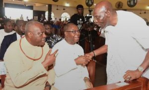 Delta State Governor, Rt. Hon. Sheriff Oborevwori, former Governor of Delta State, Chief James Ibori, former Chief of Defence Staff, Gen. Alex Ogomudia, on Friday, attended the funeral mass of Late Chief Raphael Odiaka Ezeoba.